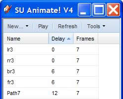 SketchUpでアニメーションを作成する最終ステップは、シーン作成です。 SU Animateの実力は、SketchUpのシーンと各シーンのレイヤを自動作成することにあります。 オブジェクトアニメーションでは、シーン毎にレイヤが作成され、再生中以外のすべてのレイヤが非表示になります。 シーン数はすべてのアニメーションパス上のフレーム数の合計と同じになります。
